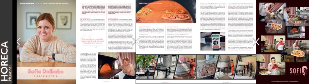Horeca Magazine juni 2023, INSPIRING PEOPLE – Sofie Delbeke, pizzeria Sofia, artikel – editor Horeca Magazine, artikel Tine Bral, foto’s Marc-Pieter Devos